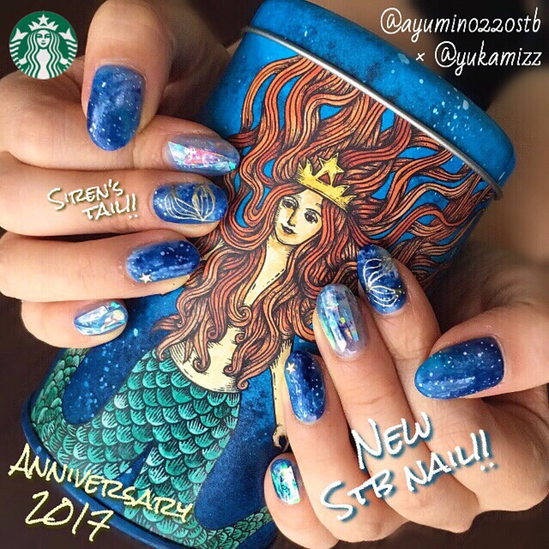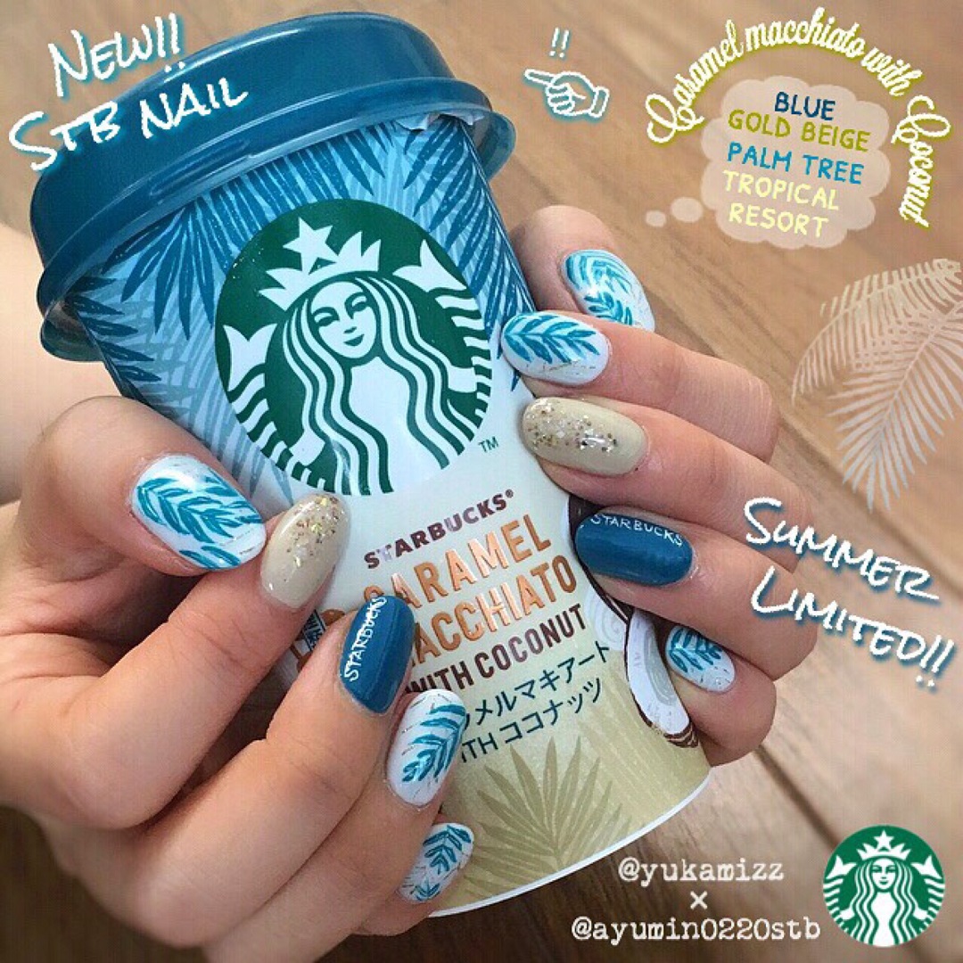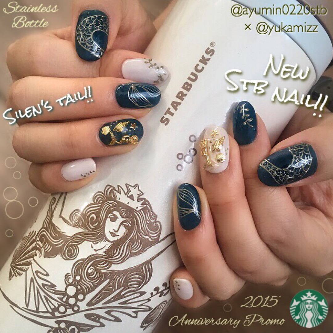 每年9月是日本星巴克的週年慶! 這款是AYUMIN將自己喜愛的2015年週年慶主題設計變化成指甲彩繪的照片。
