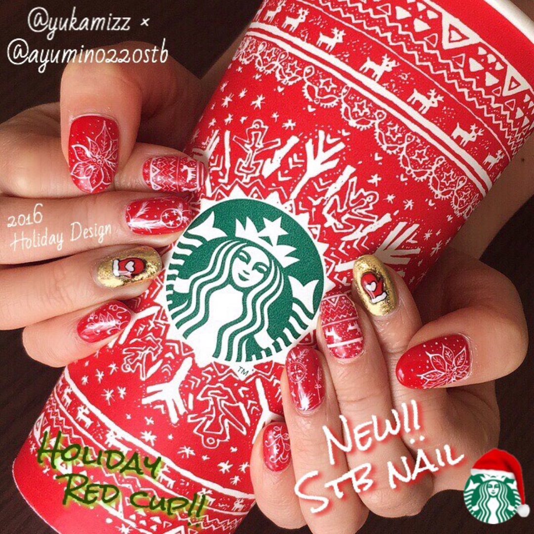 AYUMIN最新上傳的照片是用星巴克去年的聖誕紅杯與今年的聖誕設計組合而成的聖誕款指彩設計。特色就在於用細膩的線條描繪出星巴克聖誕杯的圖樣設計!