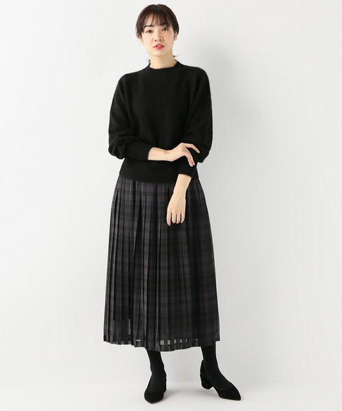 本季最潮的格紋百褶裙! 選擇長款的百褶裙比較容易穿搭,而且顯得成熟喔。 百褶裙的立體感有修長的效果,可搭配有著洗練休閒感而且又有氣質的黑色系穿搭♡