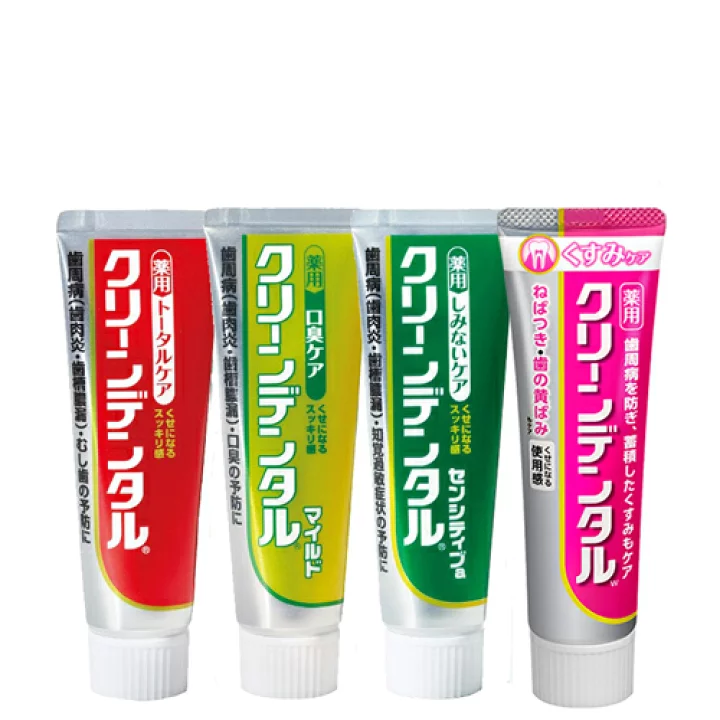 此款為第一三共藥廠推出的美白牙膏,但同時也能針對口腔問題進行護理的二合一牙膏,特殊消除牙漬成分,讓色素沈澱及牙垢扶起後去除,配合微粒子清潔成分去除係為髒污及牙垢,並有預防牙周病、預防口臭、預防舒緩蛀牙、預防敏感性牙齒,四款不同效果的牙膏,依照情況選擇適合自己的款式!