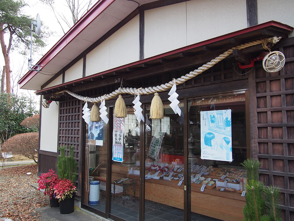 旁邊還附有溫馨的販賣部,不要以為看似無人就這樣走掉了,從外面就可以看到琳瑯滿目的神社相關周邊商品,不管是想要替家人、朋友、另一半買御守都很適合。這裡的購買服務採取按鈴方式,按下服務鈴就會有親切的人員從裡面現身替你服務喔。參拜完之後別忘了一覽千秋公園的美景,這裡的建築記載著許多歷史,來散散步跟著周邊的建築一起走進歷史的隧道中吧!