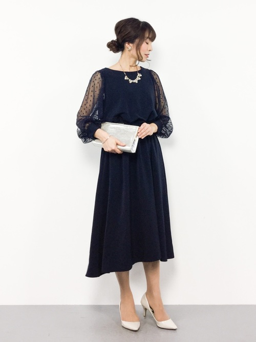 點點袖連身洋裝,微透的袖子與澎澎裙襬超級美麗。搭配有跟的鞋子或高貴的包包就是一套可以參加派對或結婚典禮的搭配。