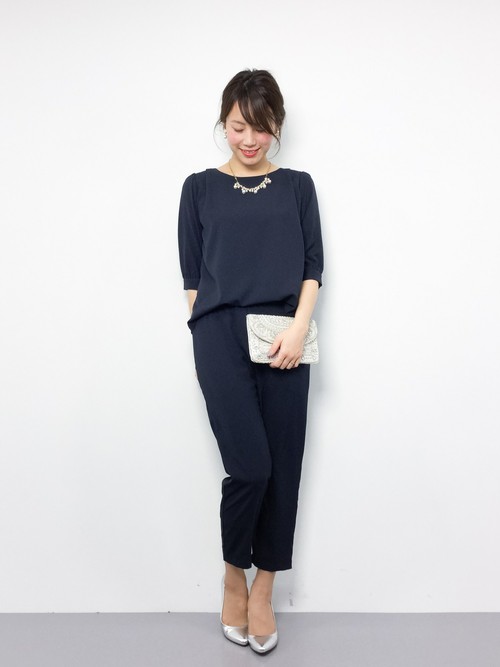 金屬色澤的淑女鞋很適合這種正式的打扮呢♪尤其是黑色褲裝搭配小巧的配件,成為上高級餐廳也無違合感的優雅氣質穿搭。