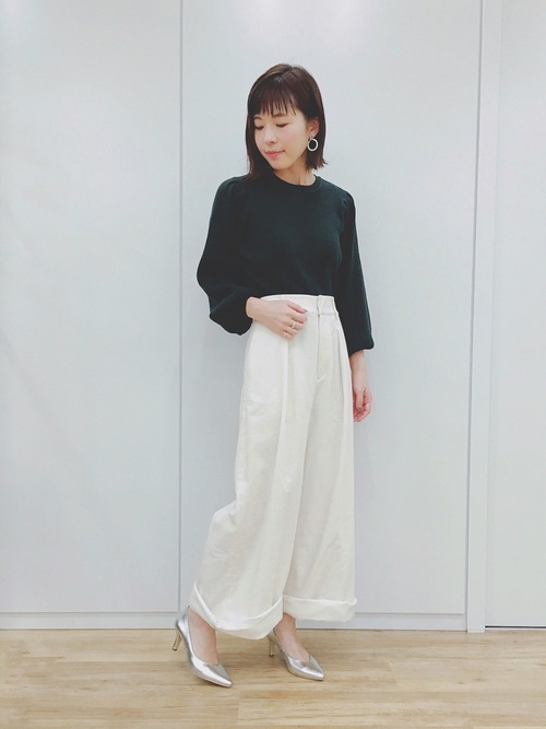 流行的堆堆袖上衣搭配長版寬褲的絕妙組合。建議正在學習穿搭的初學者,從單一色調的穿搭開始嘗試。穿上金屬色澤粗跟鞋具有畫龍點睛的效果。