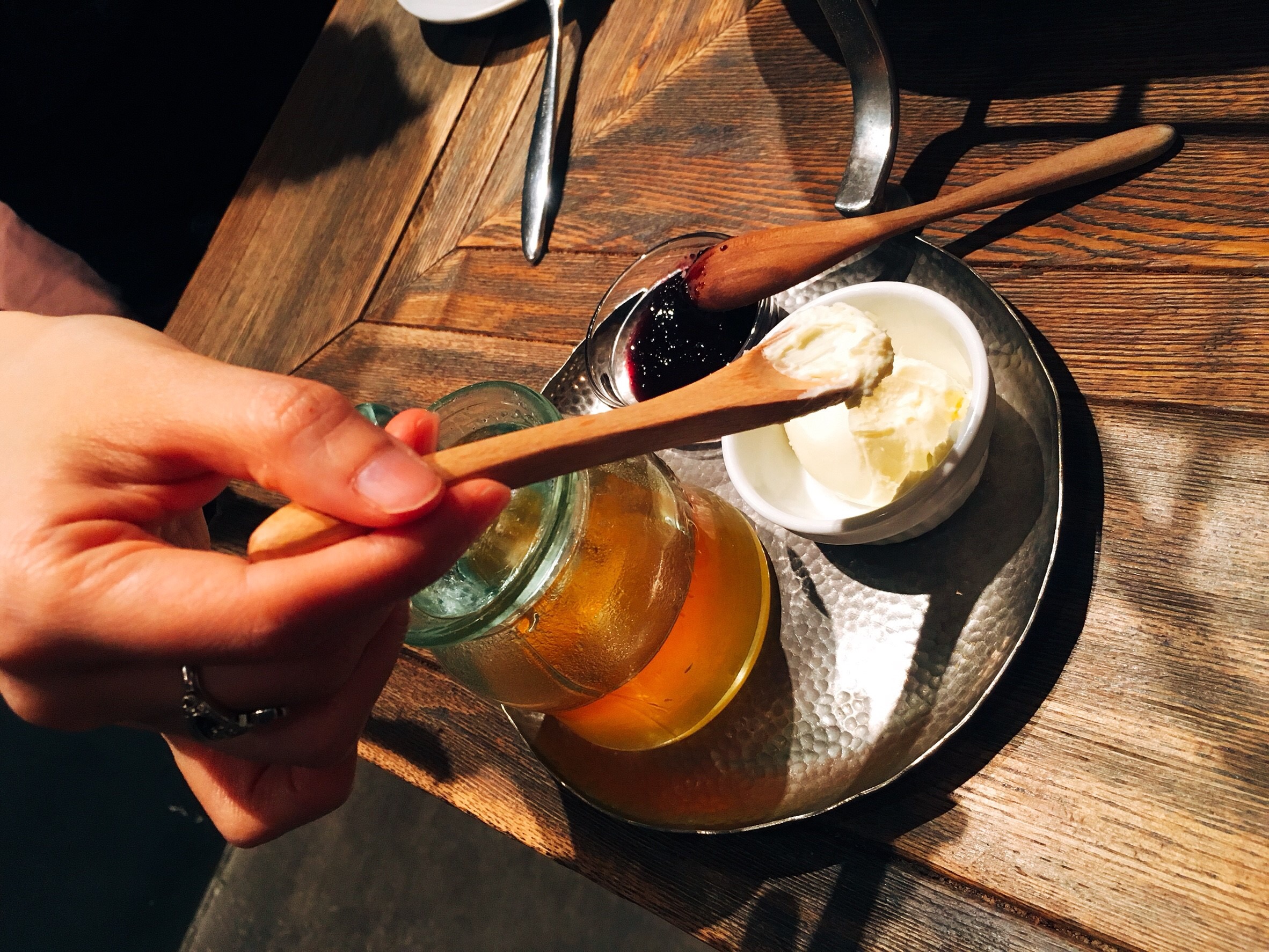 另外如果在平日午餐時間去的話,可以點他們的午間套餐,任何套餐會附上店裡經典的英式吐司和有機生菜沙拉,兩個人的份量是一個一斤的英式吐司,一個人可以吃半斤。隨著吐司而來的店家特製奶油竟然好吃到讓人一吃上癮,與烤得香噴噴的吐司簡直是天作之合,保證令人一吃難忘。最有趣的地方是主菜的選擇雖然有沙朗牛排和挪威香草燻鮭魚,如果不喜歡這兩樣主菜的人還可以選擇自家製的酵母熱烤三明治或低糖質白胡麻核桃麵包。麵包控的朋友們可能會選後面這兩樣吧,一整個套餐下來一直吃麵包也不會膩,喜歡麵包的朋友們一定要來體驗一下囉。