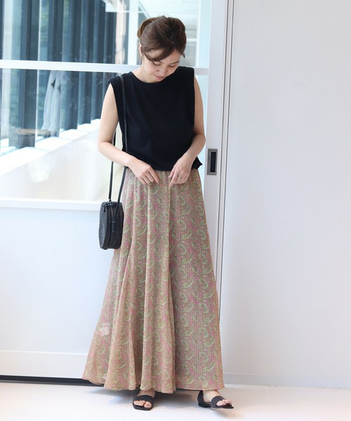 纖細的花紋如果是單一色系的話就不會太過甜美並且帶些沉穩感。搭配簡單的T恤穿出休閒感。無造作感的氛圍也很時髦♪