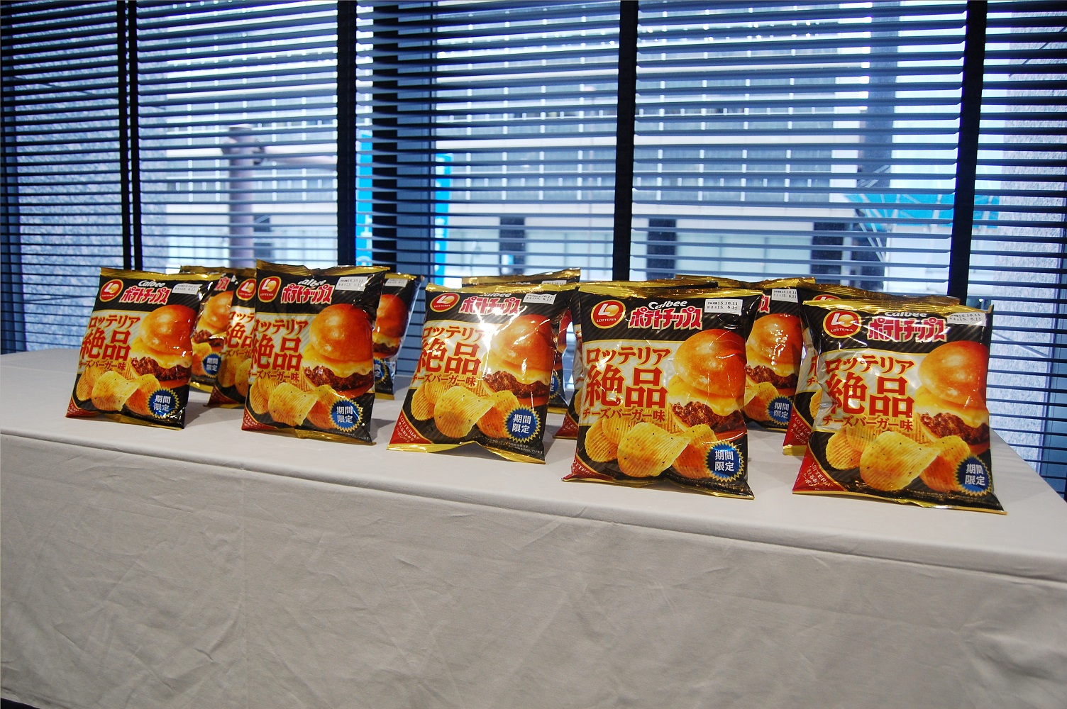繼上次與Calbee合作為期一個月而期間限定販售的「蝦味仙漢堡」,本次是第二次合作。受到上回佳評如潮的影響,便張羅了這次的企劃。透過結合兩公司熱銷第一的商品,滿足雙方的顧客需求。「洋芋片漢堡」將於7月24日起開始販售,東京都内43所LOTTERIA的店舗則將於23日首先販售。