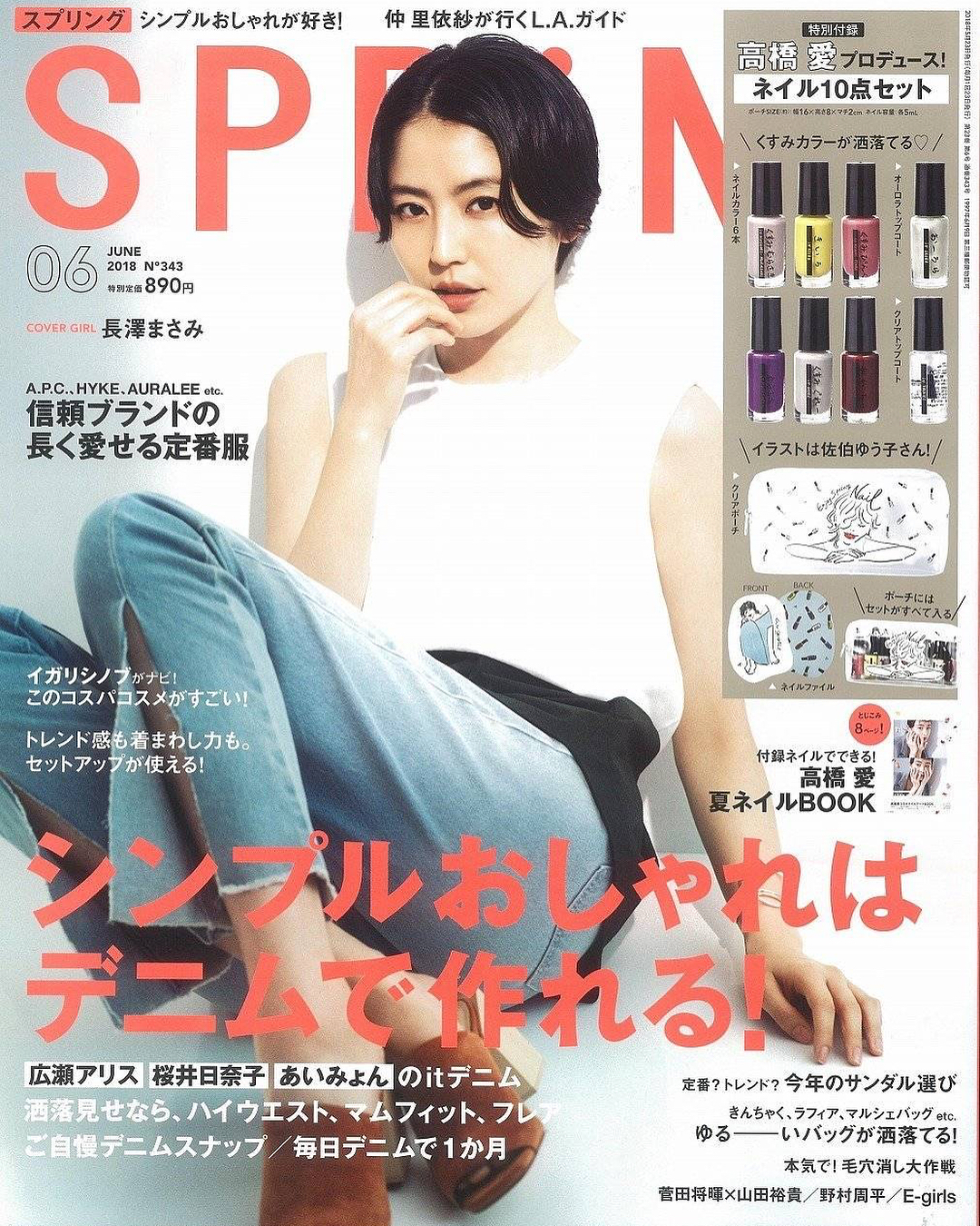 圖片來源贈品:高橋愛監製指彩組內含小收納包、6色指甲油、透明和珠光指甲油和磨甲片,中規中矩的組合算是誠意十足,包包也可以用來裝其他小物唷! リンネル 2018年6月號