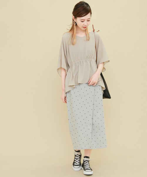 腰間是縮緊的束腰設計,實現了有變化感的穿搭風格。