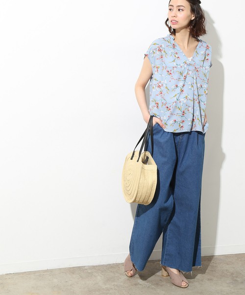 洋溢明亮開朗的氛圍、配色鮮明的花紋上衣。添加皺褶元素的上衣充滿飄逸感,也是不容易變皺的小重點喔。
