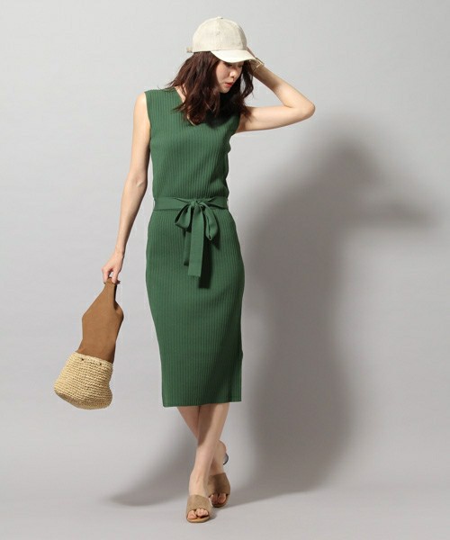 充滿輕鬆感覺,特徵是具有寬鬆及踝設計的連身洋裝使用觸感相當舒服的針織材質。採用落肩袖的設計,袖子部分也設計得比較寬鬆,可以讓肉感的手臂看起來更纖細。