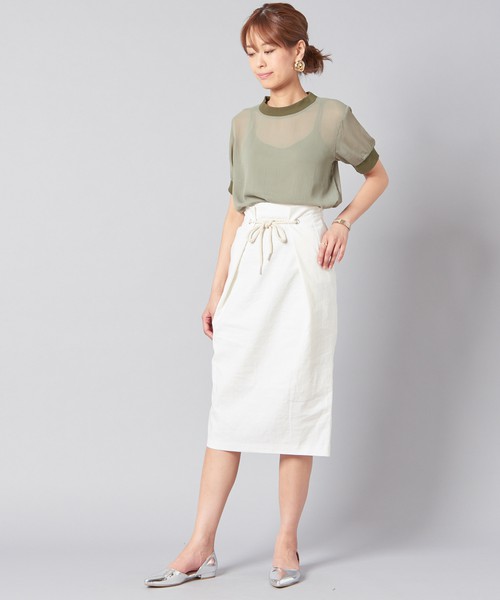 白色緊身裙×透薄材質上衣,穿出提升夏季氛圍的熟女穿搭