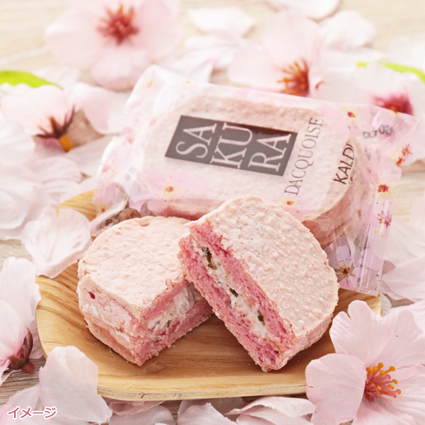 「達克瓦茲」(ダックワーズ)是一種來自法國的甜點,外層酥脆,內夾榛果與奶油調合而成的不膩口內餡,口感層次非常豐富。此款櫻花達克瓦茲乃KALDI原創產品,揉入櫻花與櫻葉,是款春意滿滿的甜食。