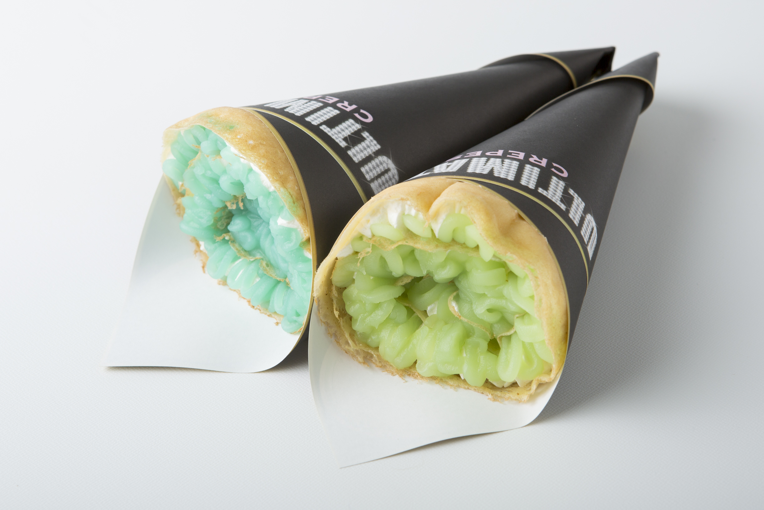 於是,很有夏天風味的滿滿清涼感的新感覺可麗餅登場了~。它們是「茜丸汽水餡可麗餅」和「茜丸哈密瓜蘇打餡可麗餅」。「紅豆泥」和「汽水」和「哈密瓜蘇打」!? 至今為止少有的這種組合令人很感興趣~!!【古老銅鑼燒店×人氣可麗餅店】這次,紅豆泥和銅鑼燒的老店・茜丸(大阪府大阪市),以及以奈良縣為中心用行動餐車來賣可麗餅的「ULTIMATE CRAPES」,互相合作。ULTIMATE CRAPES是一家,1日平均賣出300個以上使用了奈良縣和和歌山縣的食材所作出的講究可麗餅的人氣店。這樣的店,與古老的銅鑼燒店合作。新感覺的可麗餅就誕生了!!
