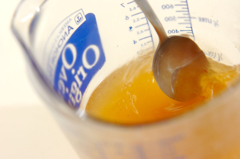 將<湯>的材料各分成1/3的量、分成兩次加入,去除水氣同時邊用大火翻炒。