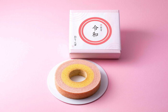 知名的年輪蛋糕店「年輪家(ねんりん家)」,也推出了限定的令和版年輪蛋糕。內圈是招牌雞蛋口味,外面那圈則是櫻花口味,兩圈的圓代表從平成到令和的兩個元號。同時這也是年輪家史上第一個紅白蛋糕,只有現在才吃的到,想吃的人要把握機會!