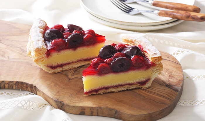 圖片來源另外藍莓慕斯塔也多加了清爽系的蛋白來讓口感更輕盈柔和,但艷麗的紫色仍然挑動著人們的胃口與慾望。還有酸酸甜甜的櫻桃派正適合胃口不太好的炎熱夏季,吃一口食慾都來了。