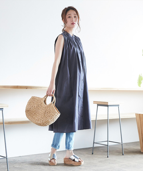 印度棉材質的超長版連身裙也登場中。利用印度棉特有的溫柔輕盈素材感,就能順利打造渡假風穿搭。搭配棕色的鞋子,呈現出健康的夏季造型。