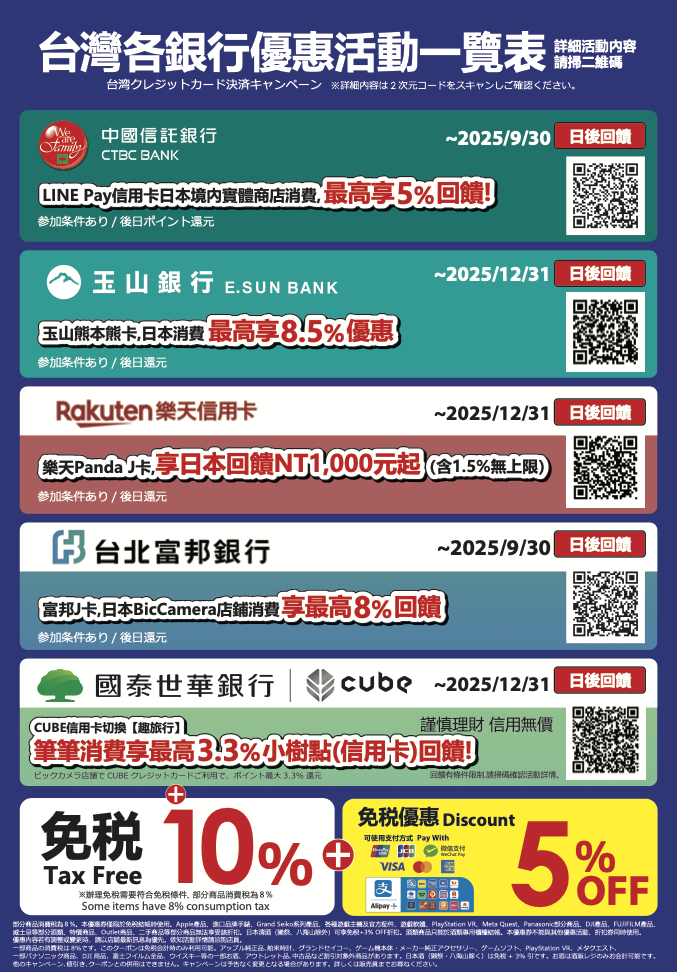 A:電器跟美妝產品累積超過¥5001日幣,持護照退稅10%後使用這張優惠券即可