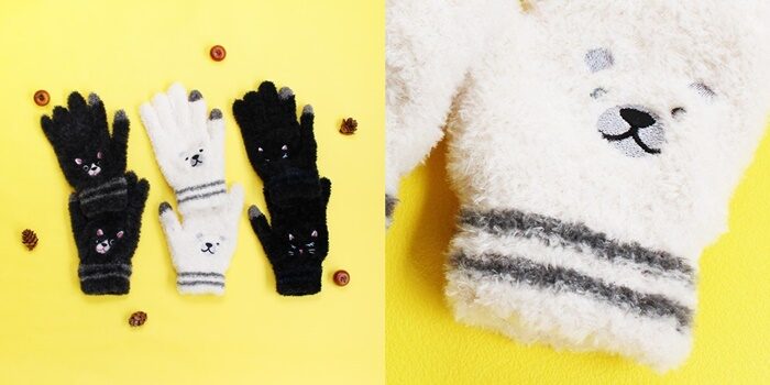 現代人幾乎手機不離手,到了冬天戴上手套之後要滑手機就變得非常麻煩。雖然市面上也賣一些觸控手套可是設計都打不中女孩的心。這時候就一定要推薦CouCou的這款毛茸茸觸控手套!圖案有白羊駝、黑貓咪、黑法鬥三種,整雙毛毛手套實用又可愛,甜美系女孩們冬天絕不能少了它。如果覺得毛茸茸款太浮誇的話,也有素色手套燙印可愛的小動物圖案,這種比較內斂的款式喔。