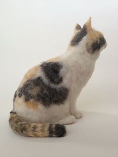 「最近我們著重在喜歡的貓咪的身體部分。並非全身植毛,而是部分植毛,讓沒植毛的地方柔滑。例如,回眸的貓咪,我們除了能和貓咪眼睛對望,從旁邊看,脖子角度之奧妙及正面看來苗條的胸前到前腳的線條等,都是我們不斷地努力在一個物體上展現貓咪不同角度的多樣面貌,而這也是立體貓咪才有的樂趣。要請民眾親自來觀賞,尋找最愛的角度。」