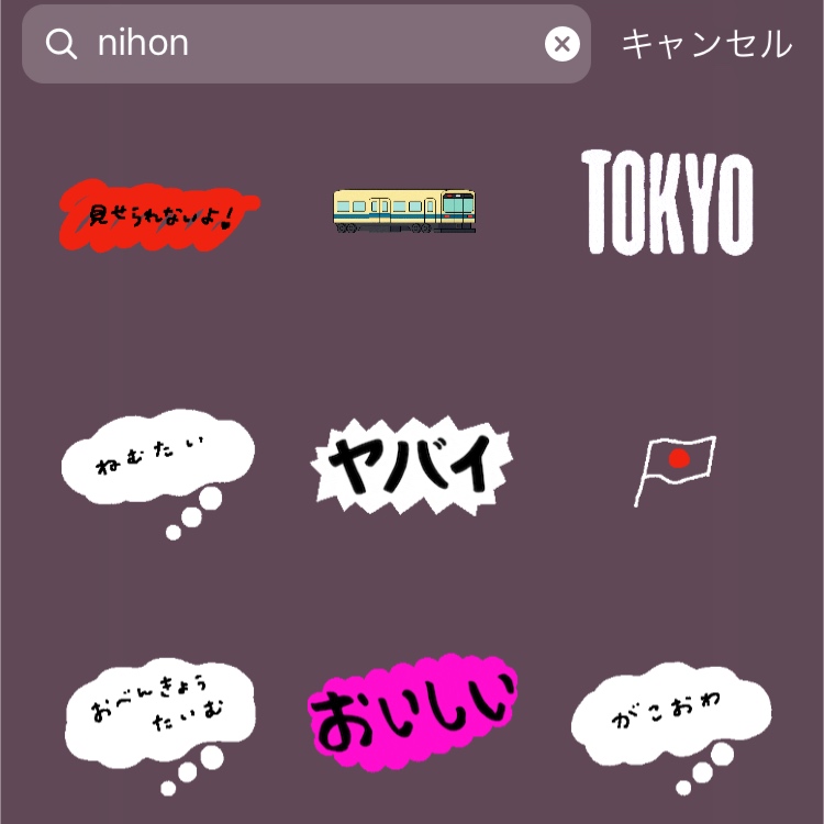 這組GIF圖也是插畫家kinupos的作品。用「nihon」當關鍵字搜尋的話,會出現很多日本的年輕人用語。每個對話框都不僅看起來可愛,也非常實用!