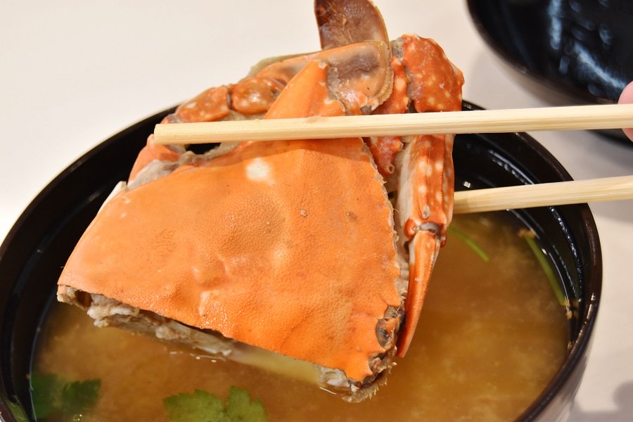放入半隻螃蟹的「蟹湯」是設定在180日圓這個價格。螃蟹裡頭也有滿滿蟹肉,所以若是喜歡螃蟹的人,這道很推。