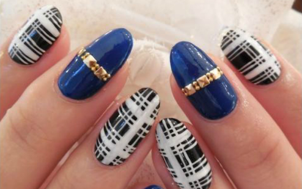 用海軍藍×白×金來完成更加有成熟風的指彩。