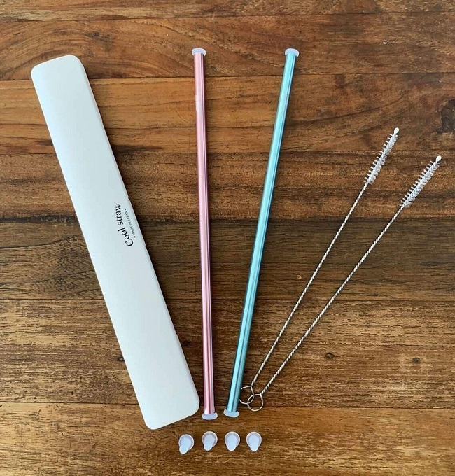 一組可選兩個顏色,同樣附有吸管蓋跟清潔棒、外盒,方便攜帶與清洗,也是近期非常受歡迎的環保吸管組。