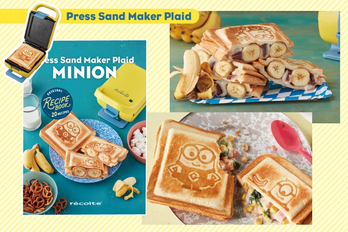這次的合作recolte當然也有幫MINION系列商品設計專屬包裝盒,三明治機外盒刻意設計一塊透明的部分,讓大家可以看到裡面的附贈的MINION食譜書。■ 商品名稱:MINION厚燒格子三明治機 Press Sand Maker Plaid / MINION■ 日文商品名稱:プレスサンドメーカー プラッド / ミニオン