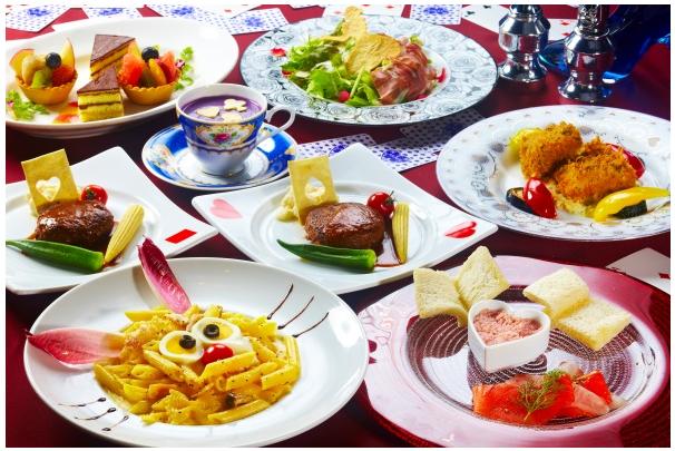 餐廳忠實地呈現了愛麗絲夢遊仙境裡那奇妙的場景,店內像是打翻了玩具箱般地,用色非常的鮮豔。書中的角色人物出現在店裡的各個角落,讓你從踏進店裡的那一瞬間開始,將不由自主的感到興奮不已!【平價法式料理&義大利料理 好吃到舌頭打結】讓客人返回童心,以平價的法法料理&義大利料理為主的MENU。
