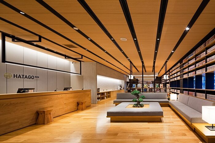 榮獲2019年GOOD DESIGN AWARD 百大設計獎的「箱根本箱」,前身其實是車站書店,為尋覓長久經營之道,轉換為書店結合飯店的型態。「箱根本箱」提供「生活被書本圍繞」般的旅居體驗,集合國內外約12,000本書籍,並於館內設置趣味的「名人書櫃」,陳列許多作家、料理家、演員等各界名人的選書,引起大家閱讀的興趣,連客房內都藏有書櫃驚喜,據說這招刺激購買的效果很好喔!