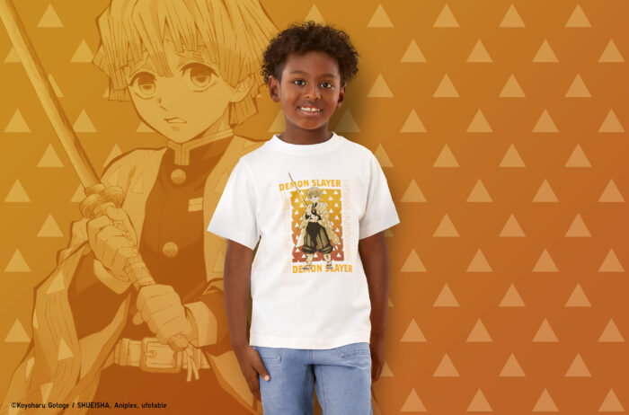 GU與《鬼滅之刃》的聯名系列以廣受各世代關注的動漫世界為靈感,將《鬼滅之刃》當中大受歡迎的角色、標語及具代表性場景融入到T恤設計中,色彩運用啟發自人物的服裝與髮型,創作出具街頭感的時尚單品。