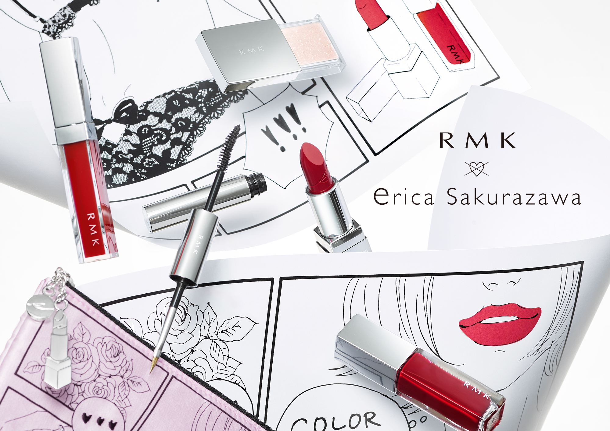 RMK今年耶誕節與日本人氣女性漫畫家櫻澤惠理香合作,推出以「變身」為主題的原創故事,女主角透過平常不會使用的耀眼紅色唇膏,蛻變成截然不同的面貌,同時也傳達RMK「COLOR CLOSET」的全新概念。RMK推出兩款耶誕組合,包含了櫻澤惠理香設計的原創化妝包,並將經典熱銷誘光水感唇蜜以及底妝產品推出縮小版組合,新手與鐵粉都值得擁有。