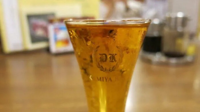 「通通來一杯吧!」雖然很想這麼說,但小編晚點還有其他的取材,所以只能弱弱的點了一杯電氣白蘭跟下酒菜來品嚐。 琥珀色澄澈的電氣白蘭在遞出食券之後,才一陣子就來到桌上了。好美——這是筆者想到的第一句話,然後就是取材的瘋狂拍照,有點把隔壁的歐吉桑給嚇壞了真的很抱歉。