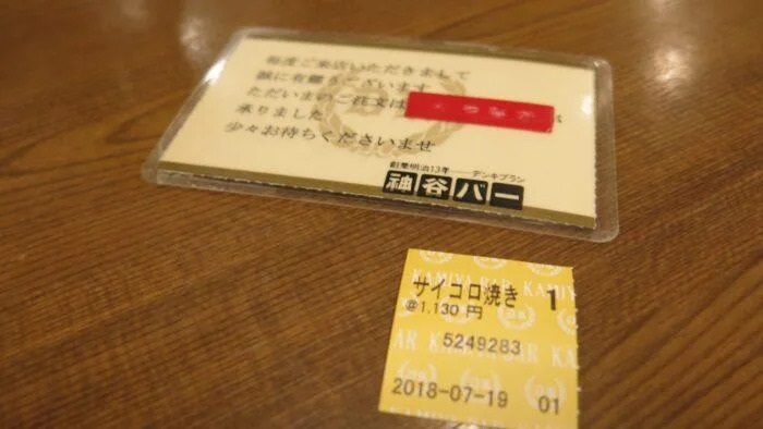 除此之外筆者還點了骰子牛燒肉當下酒菜,圖中是食券以及店員收下食券後會給你一張等候上菜的卡片。