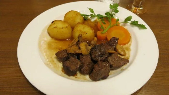 筆者並非專家,但一直是對酒精愛湊熱鬧的小編第一口淺嚐電氣白蘭時有些被驚豔到,這不是業配也不是客套——帶著一點甜味跟藥草香一瞬間以為自己喝的不是烈酒,但下一秒又立刻感受到烈酒的灼熱溫度,舌尖可以感覺到一股藥草味,有一點點漢方藥的氣息但還算滿舒服的,不愧是在淺草當過偶像的名酒呢。就這樣配著點來配菜的骰子牛,一口一口地品嚐,完成了這次取材最重要的行程。