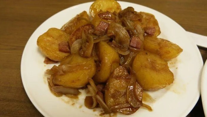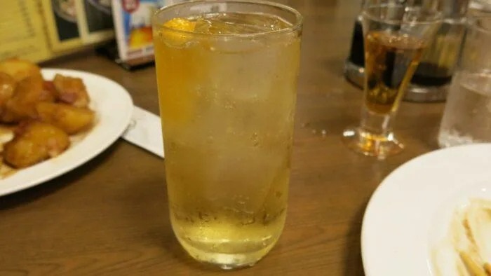 意外的刺客,骰子牛肉與馬鈴薯,超級好吃。 第二輪是隔壁上班族們熱烈跟筆者推薦的馬鈴薯炒洋蔥配上電氣蘇打。電氣蘇打其實就是電氣白蘭中的那個特殊的藥草成份配上清涼碳酸水,很推薦想來品嚐大正昭和氣息但又對烈酒沒輒的女生朋友們。