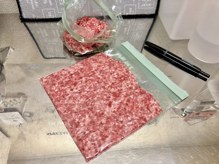 同樣是日本網友麦ライス(簡単レシピ)@HG7654321的小秘技。絞肉特價的時候常常會忍不住大量購買,回家後分裝成一小袋放到冷凍庫保存。這時候只要多一個小動作就可以讓冷凍絞肉更容易操作,那就是壓平後再放入冷凍庫,這邊要注意的是壓平的厚度千萬不要超過1公分,這樣會比較好折斷取出需要的部分喔!如果一次要使用整包可以直接將整袋泡在冷水中解凍,更能保持肉的鮮度喔!