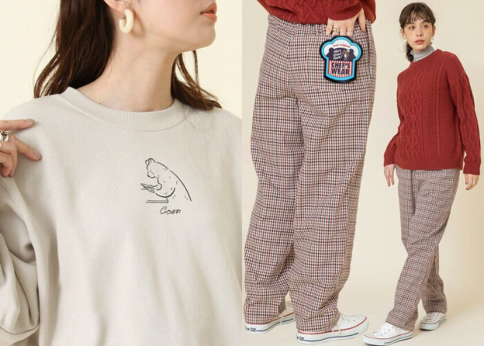 御用設計師金安亮筆下的coen bear,結合oversize的衛衣,營造軟萌可愛氛圍。下半身則選用較為強烈的格紋褲子平衡色彩,材質輕薄適合微涼秋日或是溫暖的室內行程。