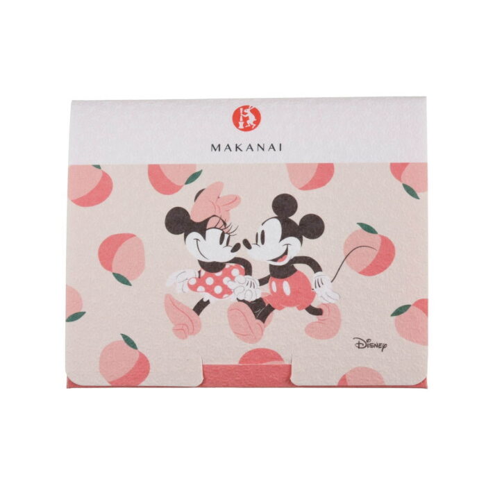 抽取式吸油面紙在設計上也頗具巧思,使用前上頭印著可愛的蜜桃圖案,使用後則可以看見米奇和米妮的圖案顯現,隨身放在包內不管是素顏或是補妝前都很好用。商品資訊