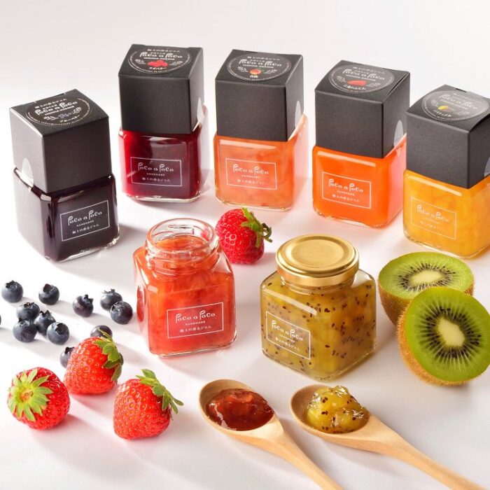 與大多數採用透明瓶身的果醬不同,以全白容器搭配水果圖案充滿了自然新意,帶點北歐感的包裝相當討人喜歡。善用依山傍海的資源推出不含農藥的能登藍莓果醬、無花果醬、蘋果果醬,還有使用稀少的赤崎草莓做成的草莓果醬,每一口都飽含在地的自然恩惠與手作溫度,除了單賣也提供組合讓大家選購。