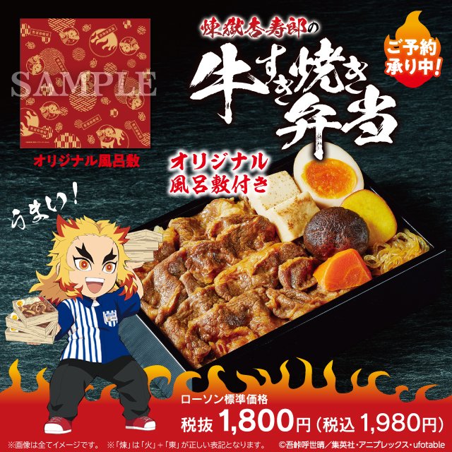 【数量限定】「鬼滅の刃」タイアップ商品「煉獄杏寿郎の牛すき焼き弁当」のご予約承り中です(^^)オリジナル風呂敷付きです♪ #ローソン #鬼滅の刃 #ローソン煉獄弁当うまいうまい https://t.co/BOeq5p2d19 pic.twitter.com/x3BVqv61Gb