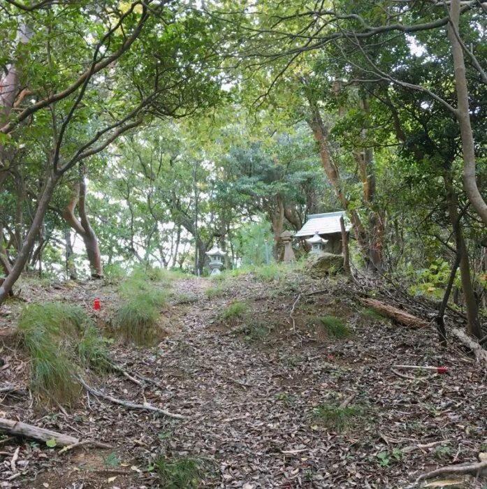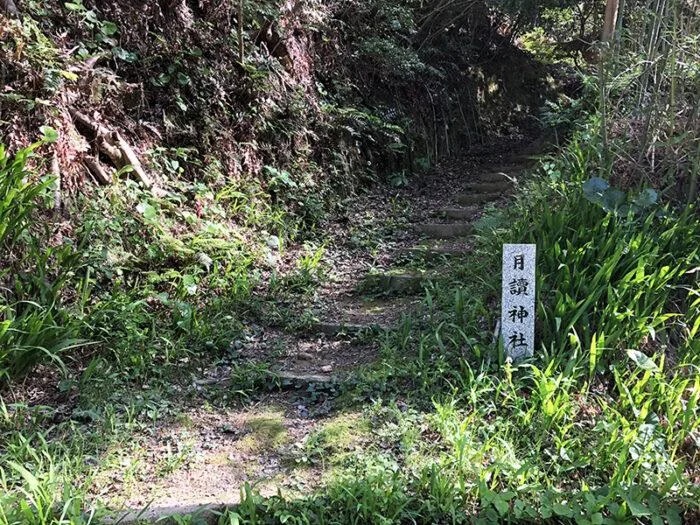(神秘的月讀神社,入口只有小小一個石碑,一不小心就會錯過) 月讀神社因為已經沒有人特別打理,因此外觀略顯荒廢,從日御崎神社附近的山上沿著山路前進,可以在車道旁發現非常小的入口,登上約400公尺的的山路後,就能夠抵達傳說中的「月讀神社」!