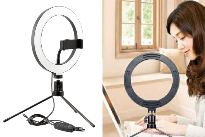 如果前面的GREEN HOUSE環形燈大小符合你的需求,但更常用來拍攝或需要進階的運用功能,不妨考慮Beyeah的10吋自拍環形燈。同樣是桌上型設計,但最大特色在三腳架最多可延伸到65cm高,輕鬆避免掉因角度引起的臉部陰影,無論辦公、攝影直播或娛樂自拍都能提供最棒的支援。環形燈光源由170顆高亮度LED構成,亮度充足卻不易發熱,不擅長面對閃光燈的人也能適應。