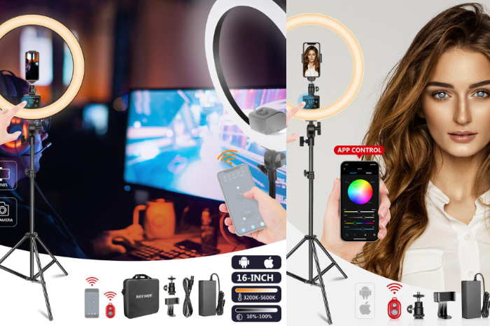 而如果相比一般辦公或娛樂用途,你需求的是較專業的影像錄製或拍照,也許就要選擇大型環形燈囉!Neewer 的16吋環形燈擁有不少好評,設計由手機APP控制超方便,不用再擔心弄丟遙控器,而燈架上明亮調節操作也直覺易懂,照明搭載320顆燈泡,能達到更廣的照射範圍。而小型環形燈具備的手機固定架也有附設,從簡單到複雜的使用需求皆能滿足,推薦給新手也很適合。