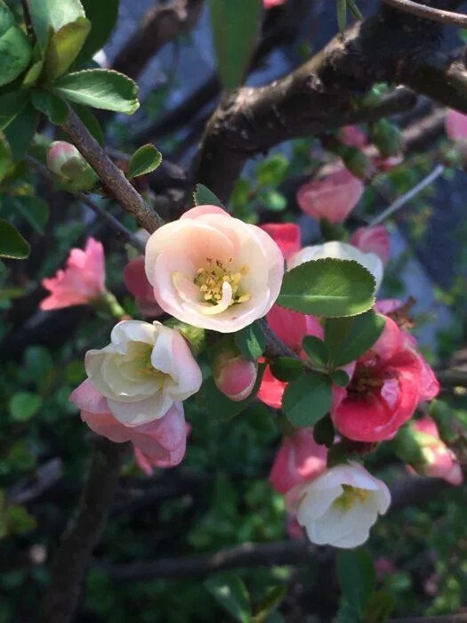 ■花瓣的形狀較窄長,隨著品種差異花瓣數不一的五瓣、多重瓣都有。花色從白色到豔粉色、黃色都有。