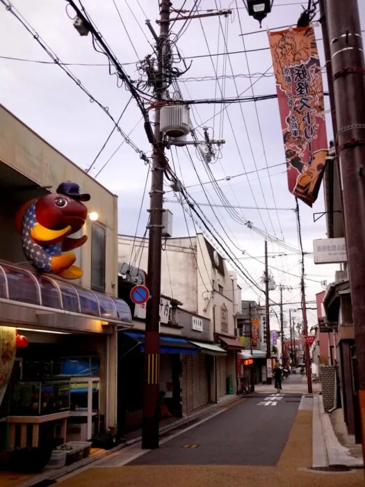 若是在不是活動期間前去一条通大將軍商店街,並沒有活動時那麼熱鬧,但位於商店街的店家門口仍會擺放著可愛的妖怪模型,且有幾間妖怪主題商店與博物館可以參觀,若是有興趣的朋友,在非活動期間還是可以順著一条通這條路從北野商店街前來大將軍商店街看看。 平時顯得靜謐的商店街,別有一番風味,水族店的上面就有一隻巨大的魚妖怪。
