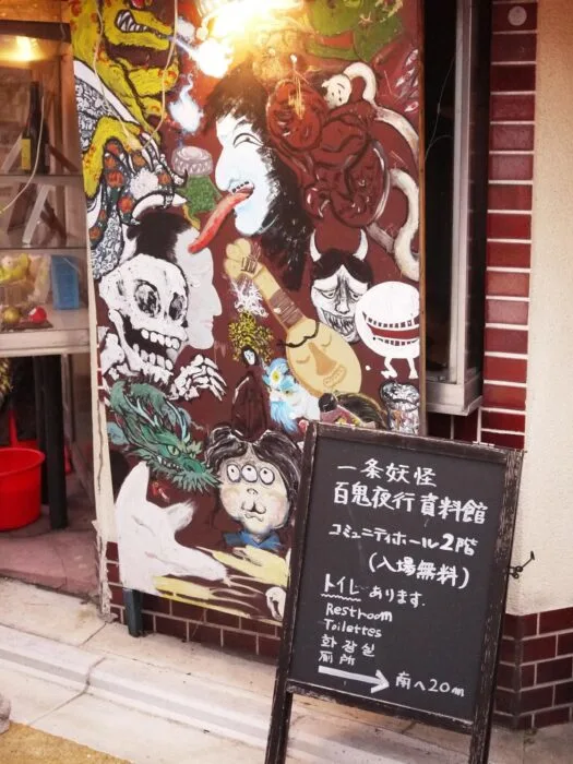 妖怪資料館的指引,與路邊的妖怪塗鴉。