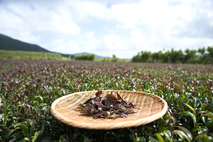 圖片來源 「日ノ茜」是使用鹿兒島縣德之島所產的SUNROUGE茶葉所製作出來的綠茶。在南方島嶼強烈陽光的照射下,茶葉會長出紅色的新芽,就好像一根根的口紅一樣,所以將他取名為SUNROUGE。 這是日本花了12年首度培育出的紅色綠茶,用了和色中代表紅色的茜色來表現,決定將這個產品命名為「日ノ茜」。